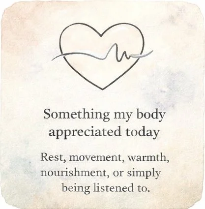Use the four prompts below to gently name what your system already knows. Write a few words, a sentence, or nothing at all.